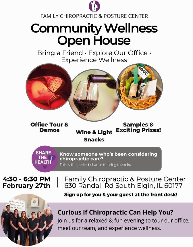 Join us for a relaxed Community Wellness & Wine Open House where local businesses, friends, and families come together to connect and experience wellness. Tour our office, enjoy light bites and drinks, explore samples and demos, and meet others who value a healthy, connected community.